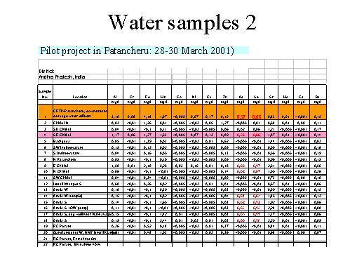 Arsenic is in high concentrations in the effluent of the CETP and also in the surface water of Nakkavagu. We found it also in Arutla because of the in-flow of surface water.