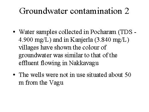 The water samples collected in Pocharam indicate a TDS concentration