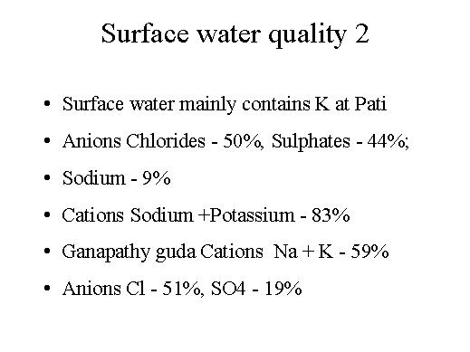 Surface water mainly contains Potassium in the Pati area. Among the anions