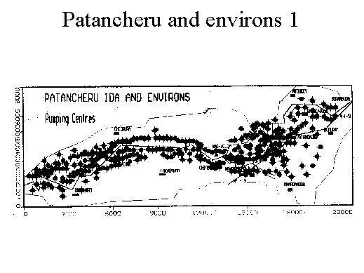 The circles indicate the density of pumping well centres, pumping centres