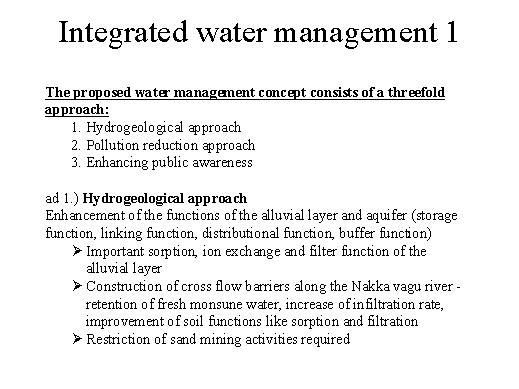 First the hydro-geological approach: enhancement must be given of the