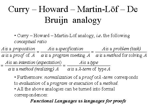 Curry - Howard - Martin-Löf - De Bruijn analogy, which is an essentially