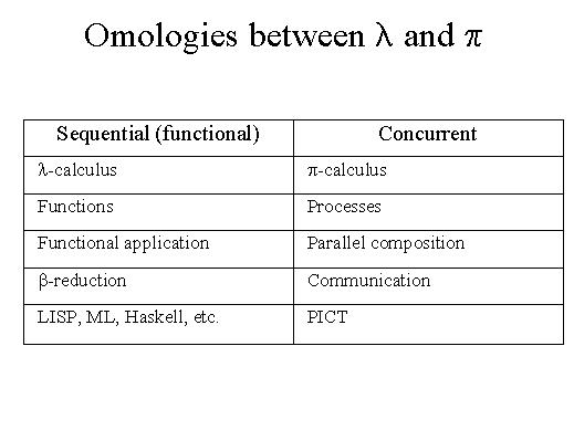 in the concurrent world. LISP, ML, Haskell are functional languages based on l-calculus, and PICT is a language based on the p-calculus. |