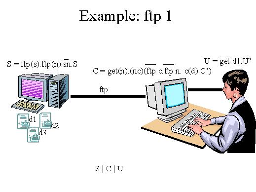 of files from a server onto to your computer. You have to communicate channels. Now, I do not really want to go at this stage in great detail, but of course in the course we have explained this formalism. So, I will just browse through these slides quickly to show how the various situations are described. |