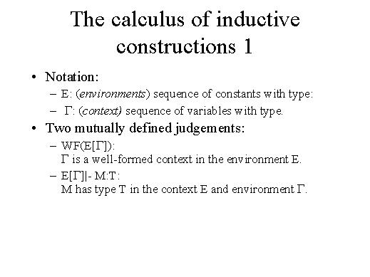 So I will just contain myself in saying that we have contexts, which are sequences of variables with types, environments and two judgements, the first is that g is a word defined context and the other one is the term M as a given type. |