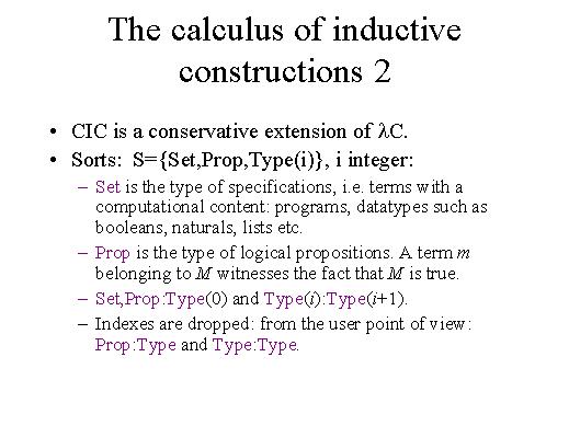 is another one which is going to the note data-types. They are essentially isomorphic, but of course we are distinguishing them because in proofs we want to distinguish what is a proof of a specification with respect to what is the algorithmic content of the proof. So, we are to take the first over the second according to the case. |