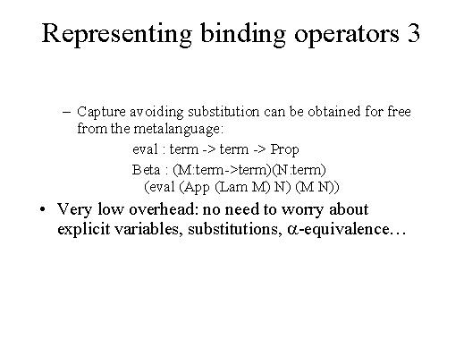 to define inductively the set of terms, then we might encounter some problems. So, as I have said, within this metamodel we can directly encode higher order abstract syntax. |