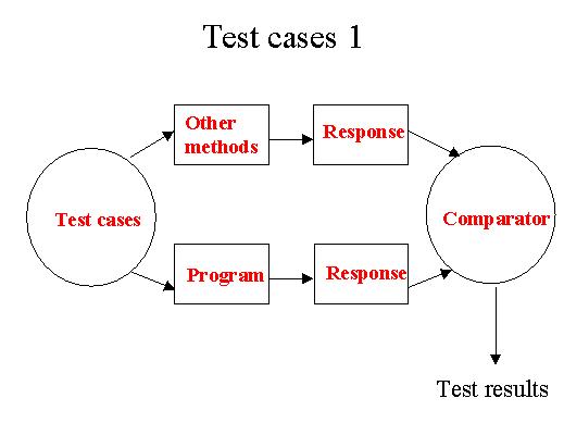 These test cases are also used with other matters. The other matters could be many. They could be simulations, or could be manual testing, or could be data obtained from other sources. So, this sort of data is what we are calling response. These two are now compared. The results that we have obtained by randoming the program and the results that are obtained by working on it or using the other methods. These two are compared, and this is what we call test results. |