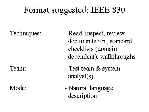 that I suggest is IEEE 830. The techniques that are normally used are the
