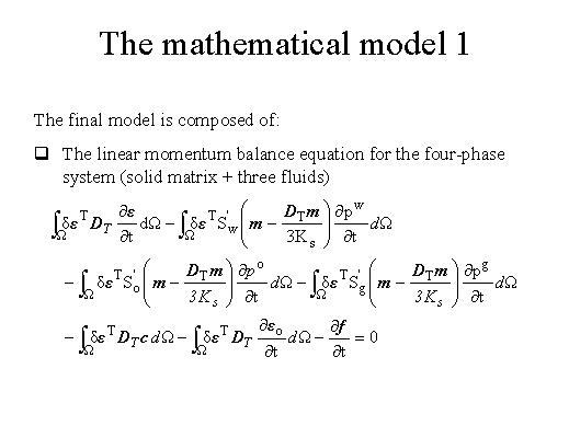 The mathematical model for our case of three-phase flow problem is given by a linear momentum balance equation for the four-phase system because we have solid matrix and three fluids