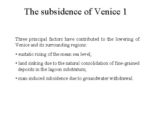 of Venice, which is due for having water pumping from the underlying aquifers.