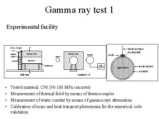 only be done by doing some comparison with experiments. Actually there are experiments which have been carried out during a Bright Eurom program. A specimen of concrete was heated from the left-hand side, it was high performance concrete and what has been carried out is the thermal field has been measured by thermo-couples and the water content by means of Gamma rays attenuation. And this has been used for calibration and heat transport phenomena for the numerical code and for its validation. |