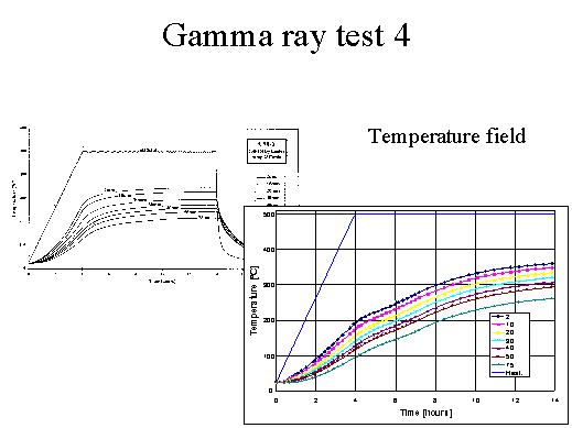 | And I show you now temperature field. These are different values here and these are inside the concrete and this one, at different time, and this one was the plateau, I mean it was the temperature of the heat source. Now we can compare the numerical values again, you see here, we went up to something before 400 degrees centigrade, also here we came up. I pretty much reproduces what happened, only the heating is a bit lower, but it is quite nice, because it is rather complicated problem. |