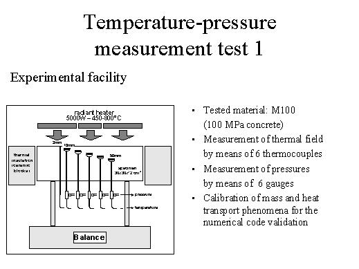 Then there was a second test used as test material and high performance concrete. At this time the thermal filters again being measured by thermocouple and then the pressure means of 6 gauges and again it was used for the calibration