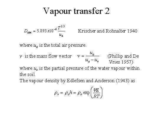 So this molecular diffusivity is given by this expression, and the mass flow vector is also proposed in the literature, and the vapour density is given in terms of r0h which is equal to r0h exp yg/RT.