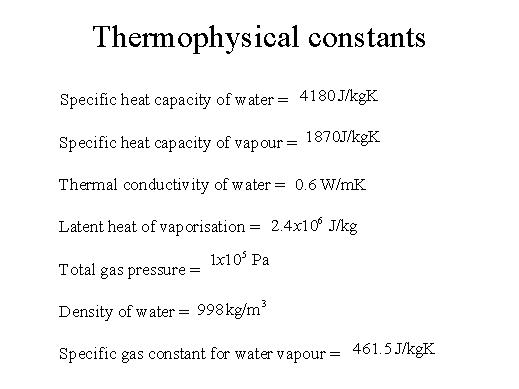 So the thermo-physical constance for this analysis and for the mathematical expressions which we saw these data can be generated quite easily.