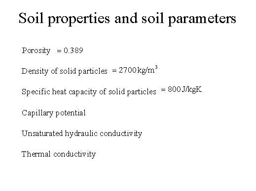 The porosity, density of solid particles and the specificity also can be generated easily and they are constant. The main difficult ones was capillary potential, because we said that we would require a relation between the capillary potential and ql. And of course the unsaturated hydraulic conductivity also is a strong function or is a non-linear a strongly non-linear function of ql, now also the thermal conductivity which has to be determined by experiments. Otherwise the accuracy of analysis will not be good. |