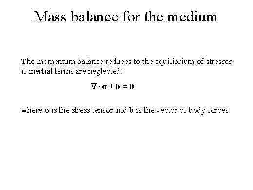 Therefore the momentum balance reduces to the equilibrium of stresses if inertial terms are neglected.