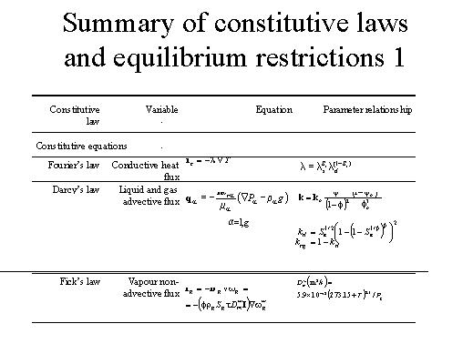 So, that is just a summary of the situation which was proposed in this study, and you have constitutive laws, the equations and the parameter relationship. Some of these have been determined experimentally.