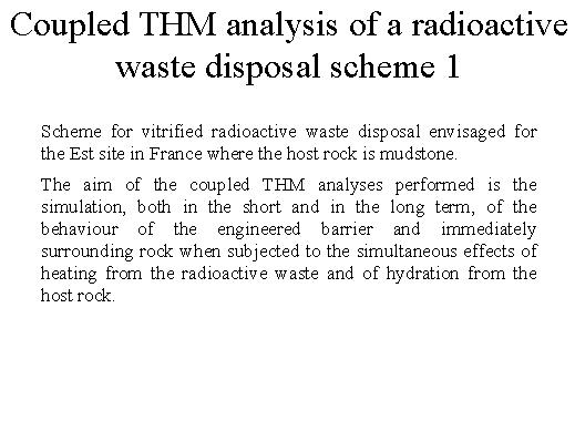 properties were taken from there. And they were basically interested in the behaviour of the engineering barrier, which is - as we have seen before - could be a bentonite clay and immediately surrounding rock. And what happens in terms of moisture flow, in terms of temperature, over a period of time. |