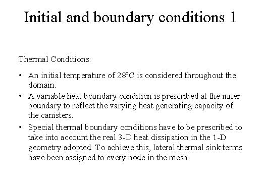 was assumed constant at 28° C. Then the variable heat boundary condition is prescribed at the inner boundary. And then special thermal boundary conditions have to be prescribed to take into account the real 3-D heat dissipation in the 1-D geometry adopted. |