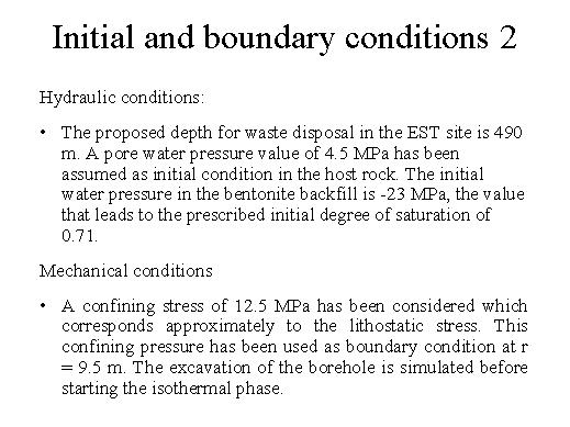pressure and also we have initial degree of saturation at 0.71. As for mechanical conditions, we have there defined stress of 12,5, which is approximately to the lithostatic stress. And then again we have confining pressure. |