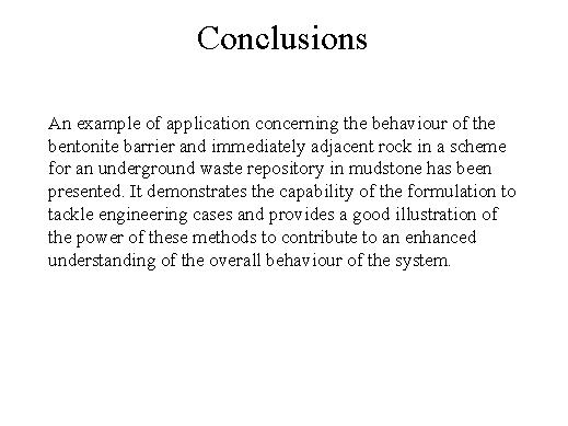 is quite necessary to predict underground waste repository in mudstone. We have also seen what happens between the bentonite barrier and immediately adjacent rock in terms of the porosity, moisture content, temperature profile. This gives actual realistic example of how numerical simulation can be used for engineering problems. |