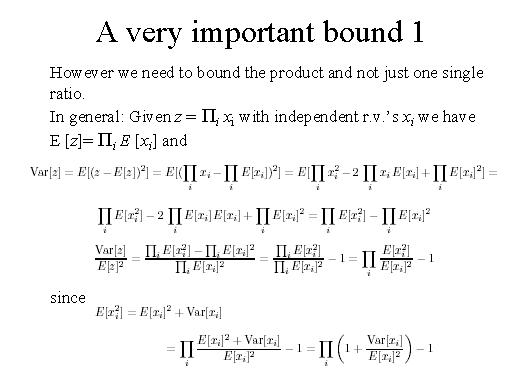 However we need to bound the product and not just one single ratio. In general: Given z = Pi xi with independent r.v.'s xi we have E [z]= Pi E [xi] and